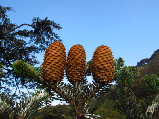 元宝山冷杉和我们常见的松柏类植物一样,也属于针叶树种,叶片针形。花期4-5月,果期10月。球果直立是冷杉属植物的典型特征之一,元宝山冷杉的球果的特征是短圆柱形,成熟的时候为淡黄褐色,是区别于其他有花植物的另一种美。